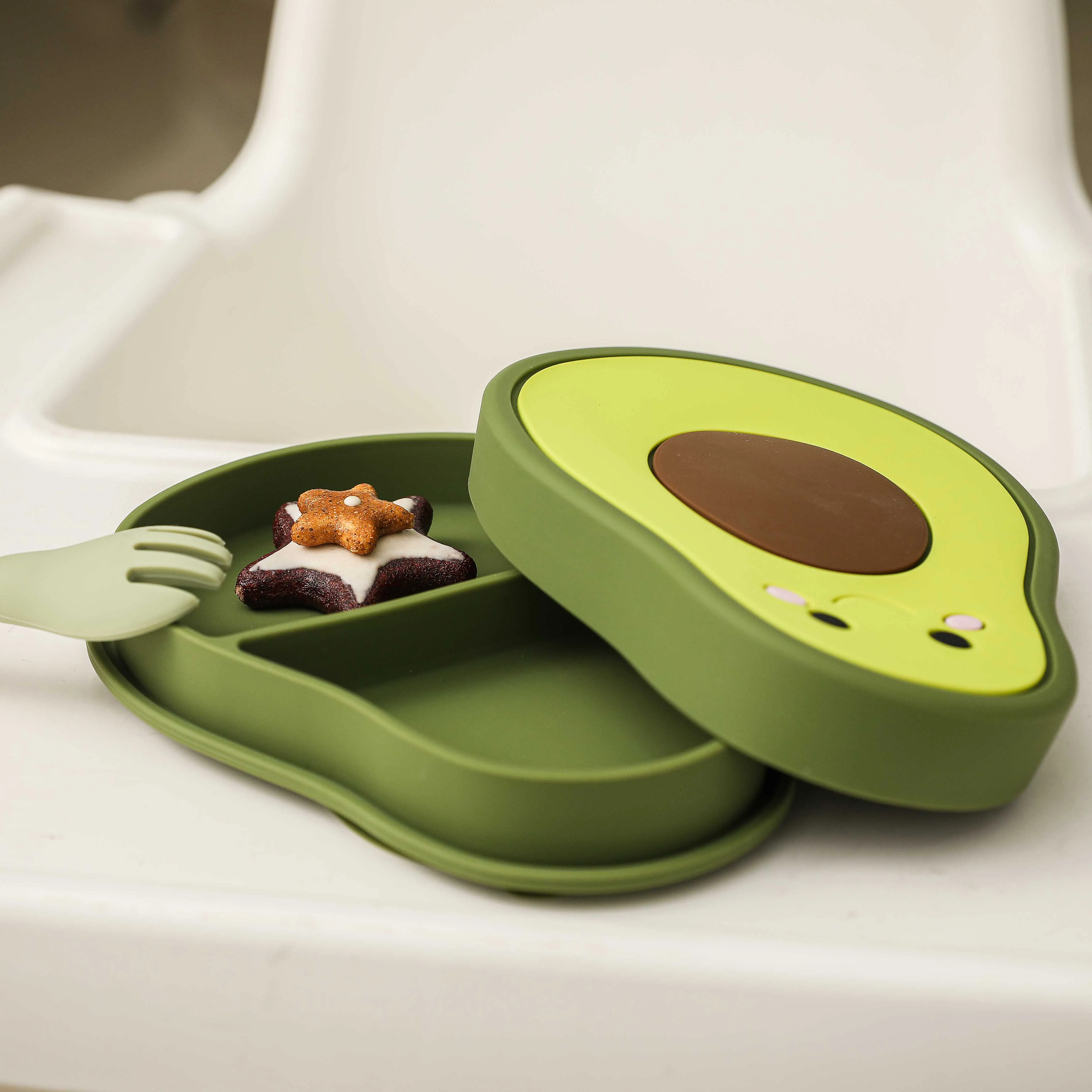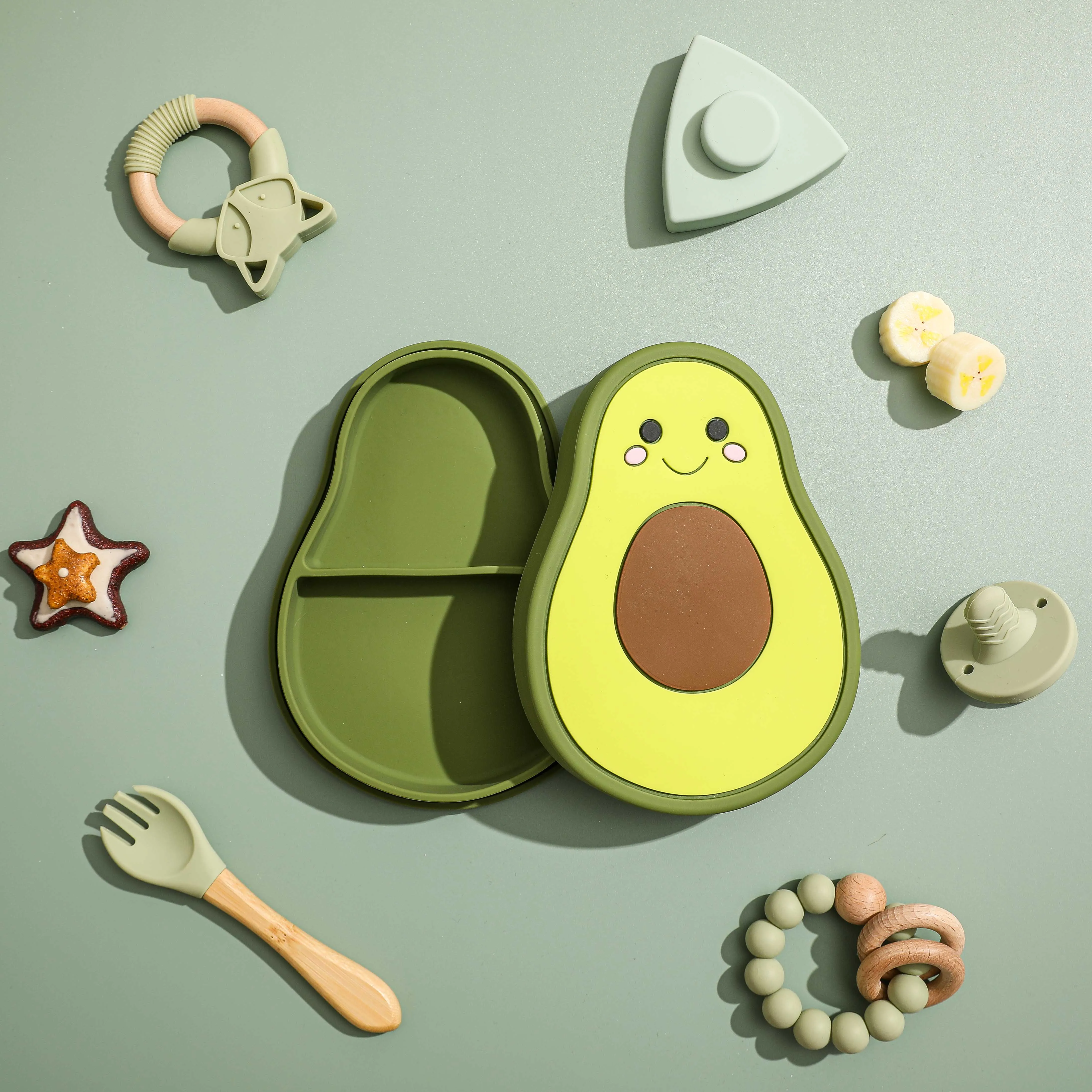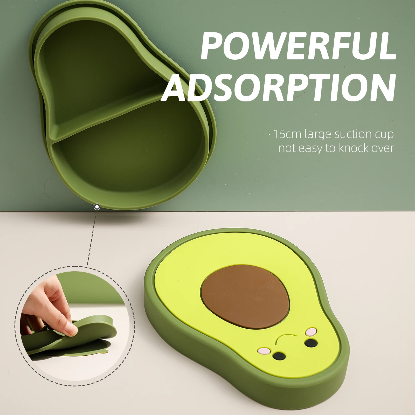 The durable, non-slip base with an extra-strong suction cup keeps the bowl securely in place to prevent spills. Its smooth, flexible texture is gentle on tiny hands, while the waterproof and heat-resistant material makes it ideal for both warm and cold meals. Lightweight and easy to clean, this adorable avocado bowl is perfect for home use or on-the-go feeding, making every bite safe, fun, and worry-free.