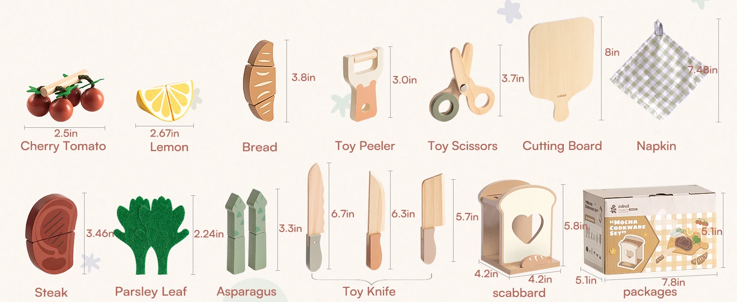 Montessori-inspired and crafted from smooth, durable wood, this set helps enhance hand-eye coordination and fine motor skills through hands-on play. Safe, long-lasting, and thoughtfully designed, it’s the perfect gift for young chefs, combining fun, learning, and imaginative cooking adventures in one charming package.
