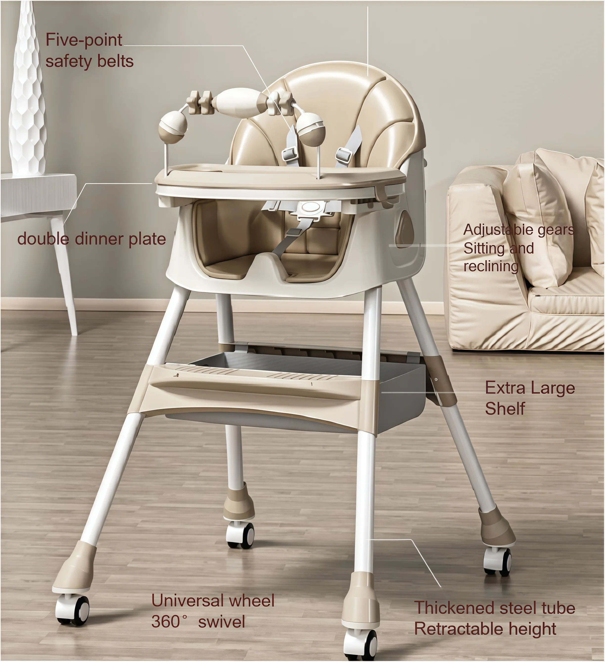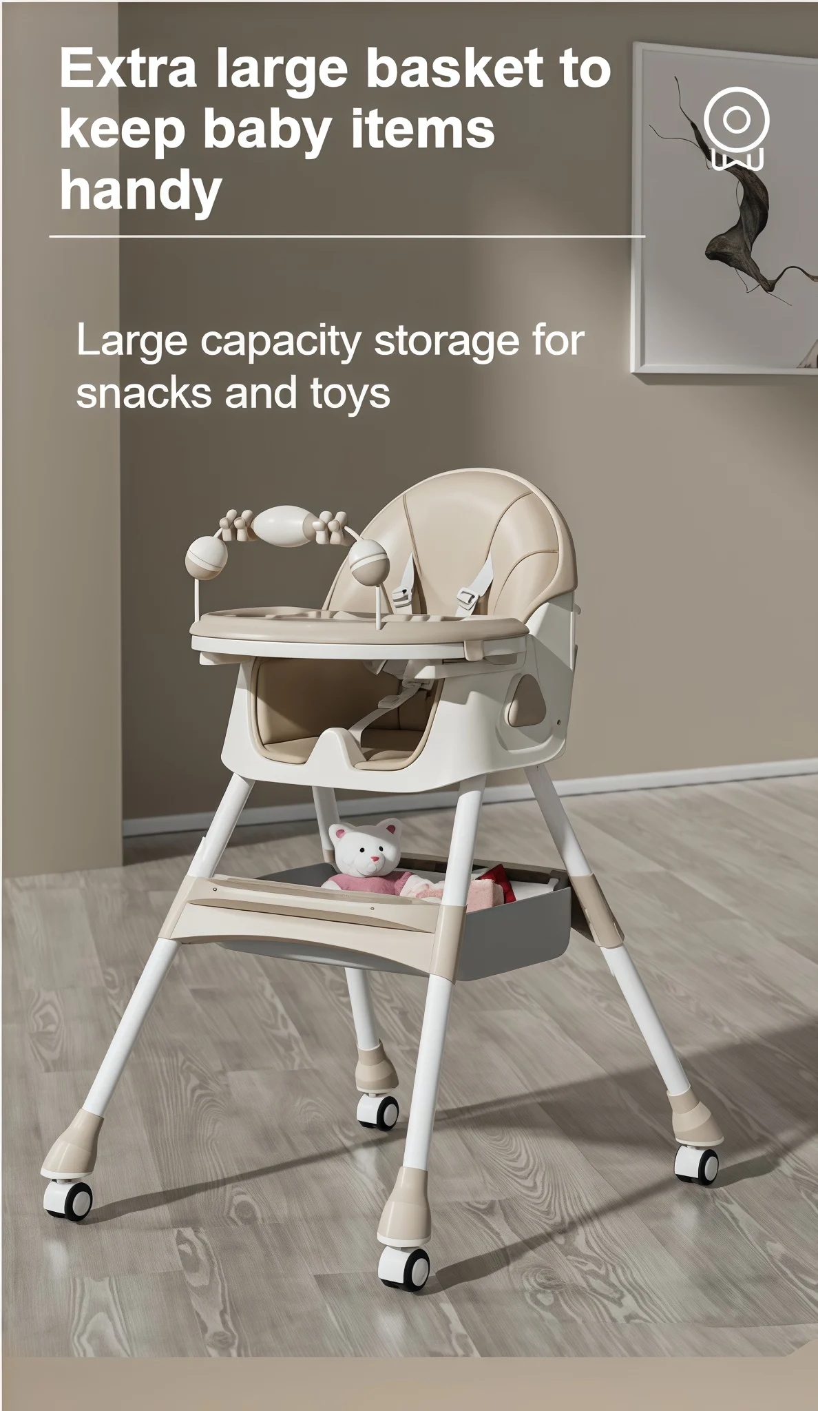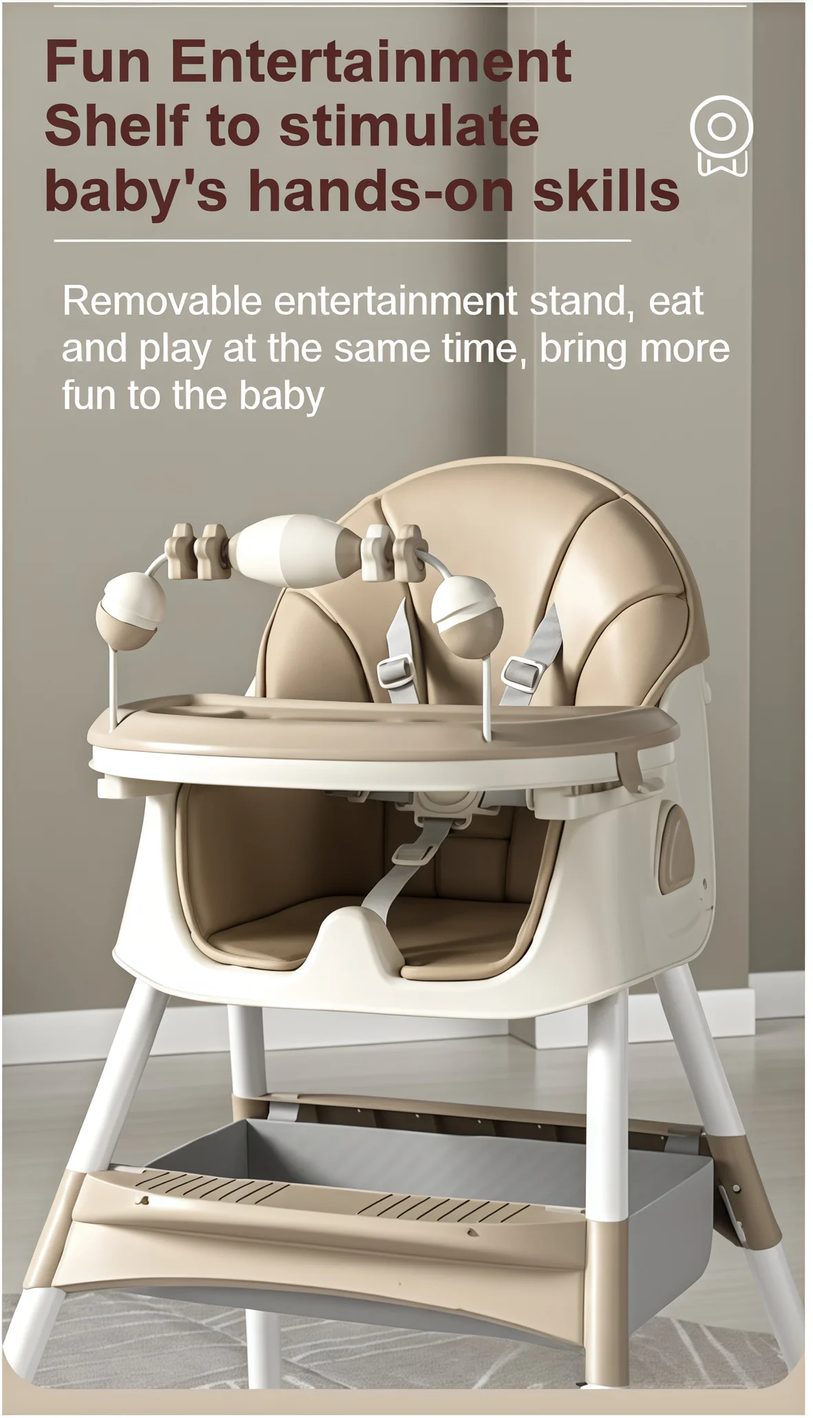 Crafted with attention to comfort and practicality, this high chair encourages proper posture and safe seating while giving babies a cozy space to eat, play, or interact with family. Ideal for busy parents, it combines convenience, safety, and durability in a simple, user-friendly design.